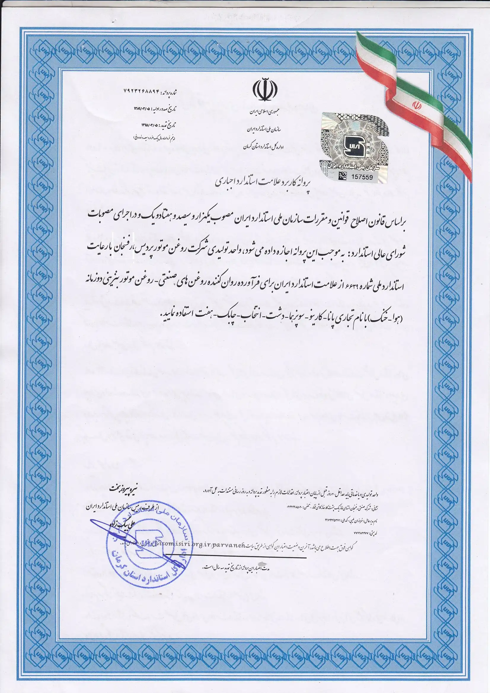 Notre société, Pardis Motor Oil, est active dans la régénération des produits pétroliers légers et la fabrication de divers types d’huiles moteur, huiles hydrauliques, huiles pour engrenages et huiles industrielles. Dès le départ, l’accent a été mis sur l’exportation. Aujourd’hui, nous sommes fiers d’exporter 90 % de notre production sur les marchés internationaux, et de réserver les 10 % restants au marché intérieur.
